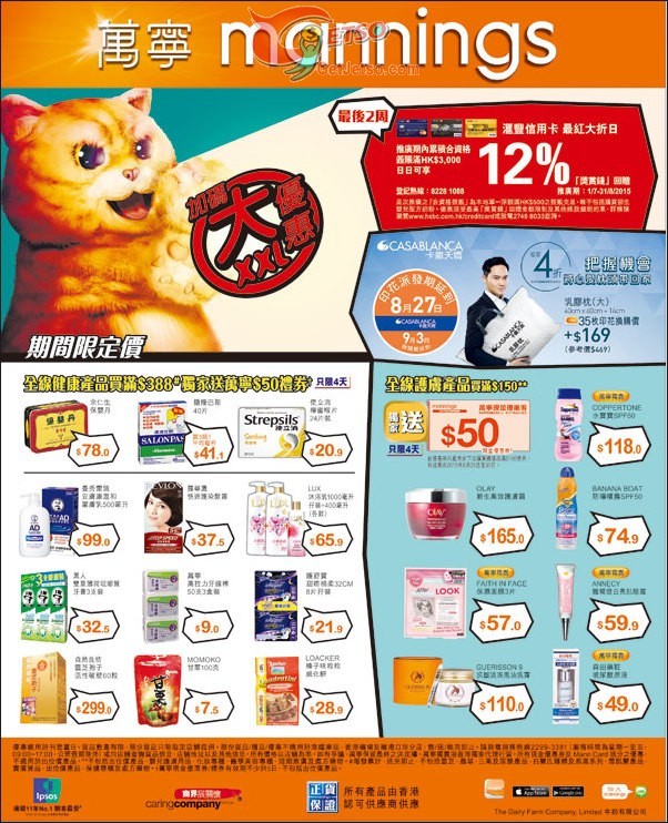 香港打折:万宁最新店内购物优惠(至15年8月24日)