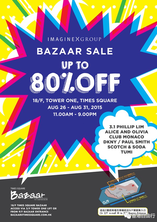 香港打折:时代广场IMAGINEX GROUP BAZAAR SALE低至2折优惠(至8月31日)