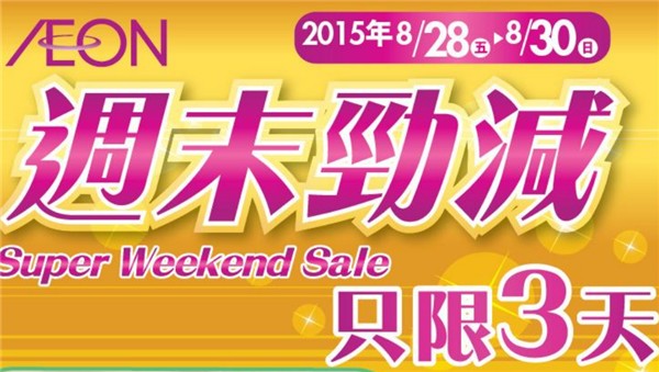 香港打折:AEON周末劲减购物优惠(15年8月28至30日)