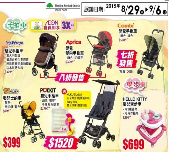 香港打折:AEON(永旺)至潮BB服装、奶粉、用品购物优惠(至15年9月6日)