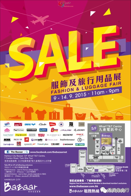 香港打折:海港城Bazaar服饰及旅行用品展购物优惠(至15年9月14日)