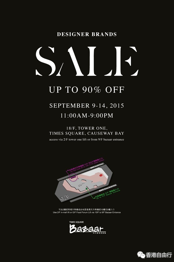 香港优惠:时代广场Bazaar Designer Brands Sale低至一折(至15年9月14日)