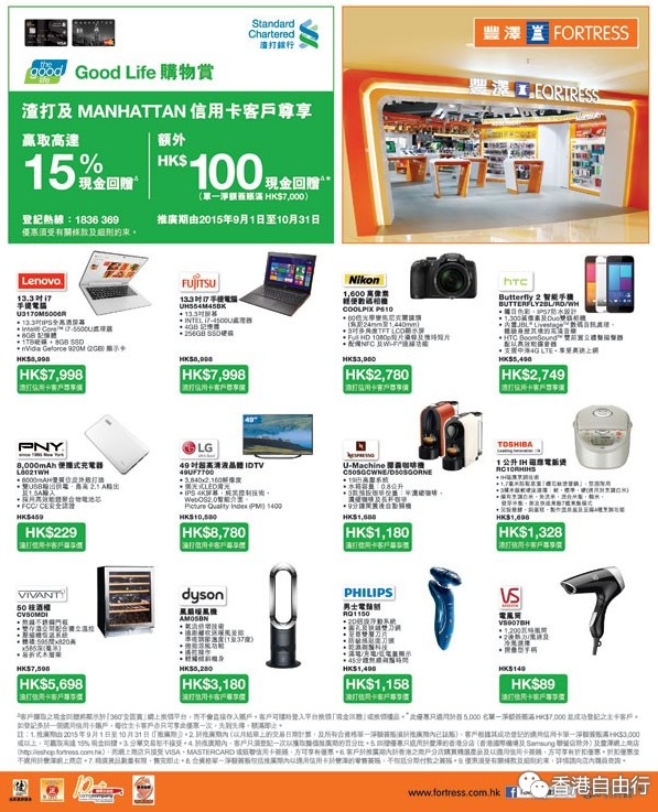 香港打折:丰泽 FORTRESS最新购物优惠(15年9月11日起)