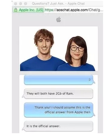 另外对于运行内存为2G这个参数,是来自苹果官网客服的回答。