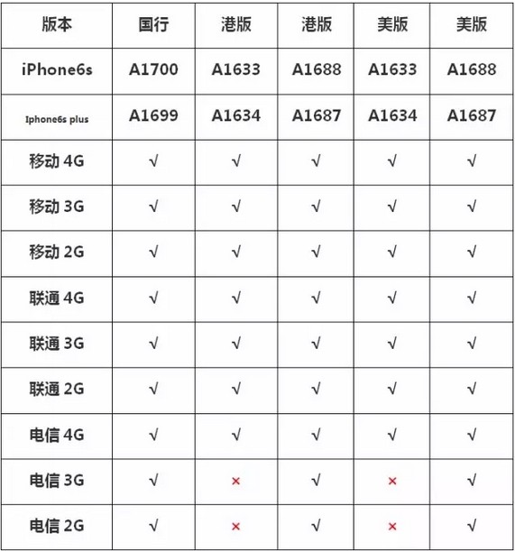 这次国行不分版本了,就一个型号,所以不用纠结选什么型号了。但是买港版或者美版,就有区别了。港版和美版的A1633和A1634不支持CDMA。如果电信用户要买港版或者美版,那就选择A1688和A1687型号。
