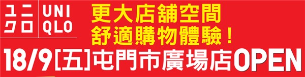 香港打折:优衣库UNIQLO屯门市广场店9.18全新面貌登场 期间限定优惠(15年9月18至21日)