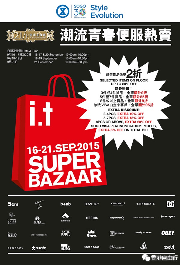 sogo崇光百货铜锣湾店21/F潮流青春便服热卖低至2折(15年9月16日至9月21日);
