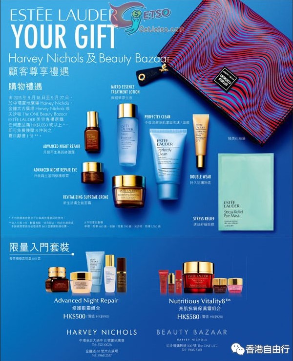 香港打折:ESTEE LAUDER Harvey Nichols 及Beauty Bazaar 独家优惠(至15年9月27日)