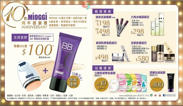 香港打折:MIOGGI 10周年感谢礼购物优惠(至15年9月20日)