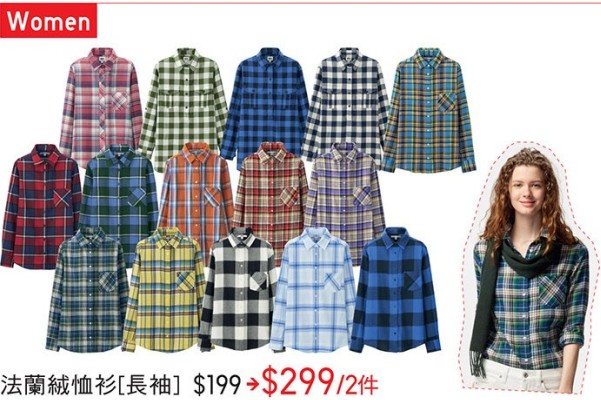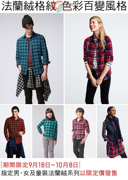 香港打折:UNIQLO 法兰绒格纹系列限定价购买优惠(至15年10月8日)