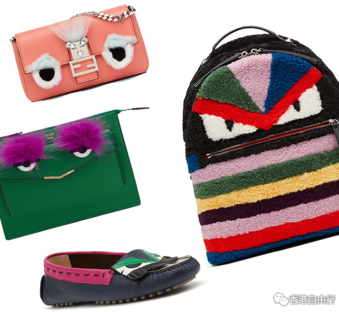 Bag Bugs 系列层出不穷的趣怪造型以意想不同的方式呈现在手袋、衣服、领汰,甚至项鍊上。女装的 Micro Peekaboo 可爱且时尚;平底 Loafer 上的眼睛图案为传统的剪裁带来新鲜感。羊毛 Shearling 物料除了用于 Fendi 2015 秋冬时装之外,背包加採用这款充满冬日感觉的物料。