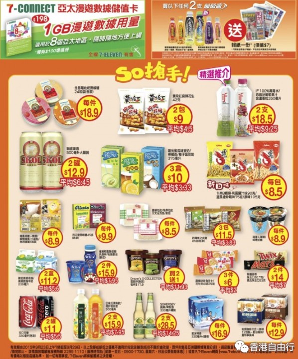 香港打折:7-Eleven本周抢手货购物优惠(15年9月23至9月29日)