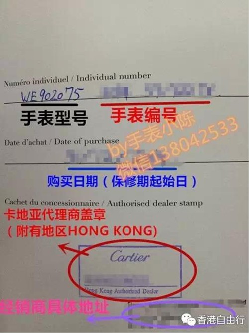 最后,并非所有品牌都有地区编号,比如卡地亚、萧邦、真力时等。这一类品牌通常是以盖章形式来显示地区。(以卡地亚保证书为例)