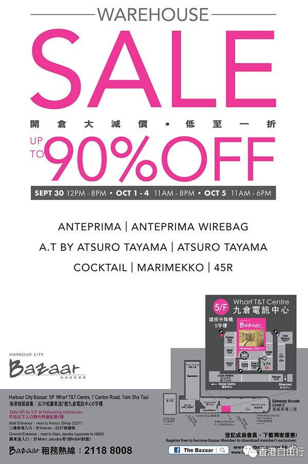 香港打折:海港城Sidefame Warehouse Sale低至1折开仓优惠(2015年9月30日至10月5日)