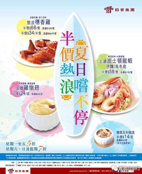 香港打折:稻香夏日尝不停10•1国庆节再推出半价热浪(15年10月1日起)