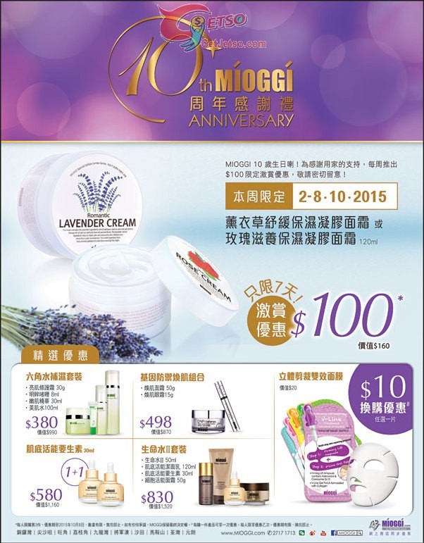 香港打折:MIOGGI 10周年感谢礼购物优惠(至15年10月8日)