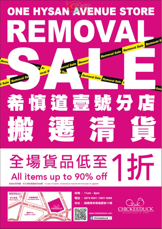 Chickeeduck 希慎道壹号分店搬迁大减价低至1折优惠(至15年10月11日);