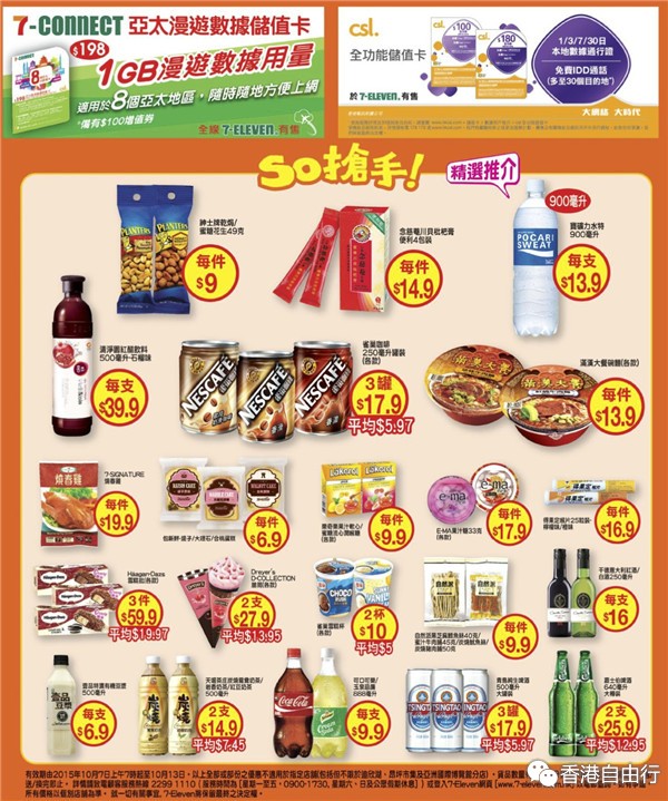 香港打折:7-Eleven本周抢手货购物优惠(15年10月7至10月13日)