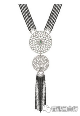 以大笨钟作设计灵感的Timeless系列,18k白金配黑白钻及绿宝石 HK$307,500