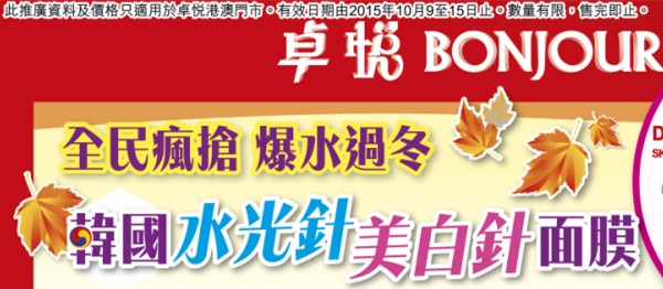 香港打折:卓悦Bonjour最新门市优惠(15年10月9日至10月15日)