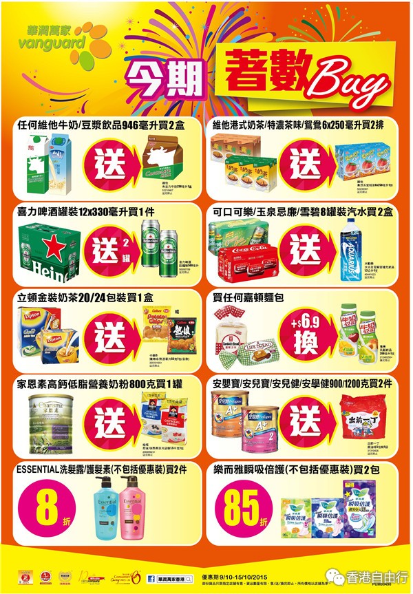 香港打折:华润万家本周至慳至抵推介(15年10月10日至10月15日)