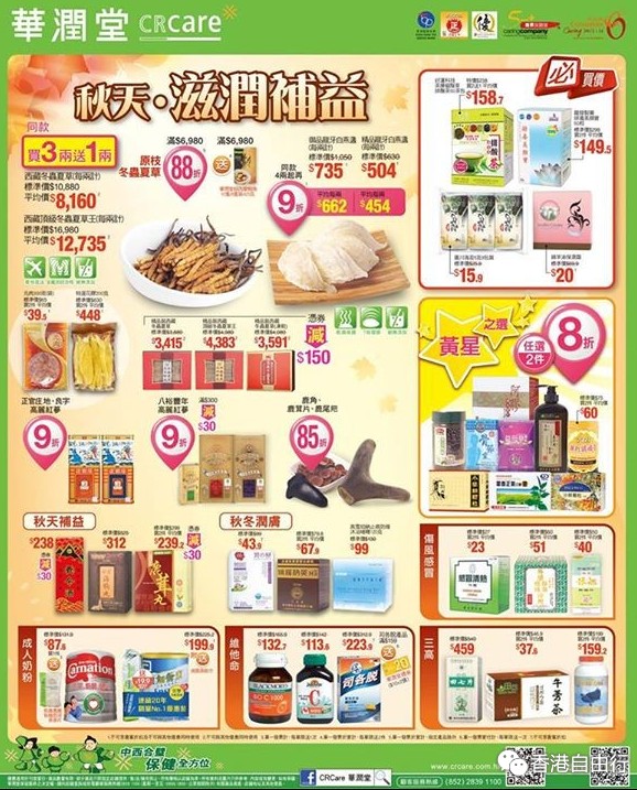 香港打折:华润堂本周最新购物优惠(15年10月10日起)