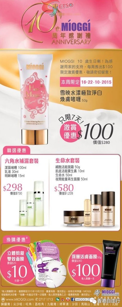 香港打折:MIOGGI 10周年感谢礼购物优惠(至15年10月22日)