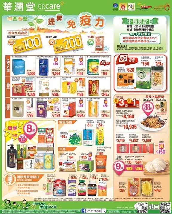 香港打折:华润堂本周最新购物优惠(15年10月17日起)