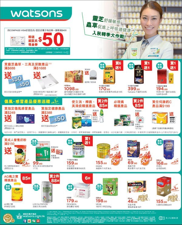 香港打折:屈臣氏最新店内购物优惠(至15年10月26日)