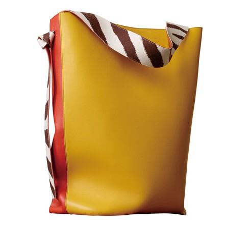 CÉLINE的简约设计总是令人无法抗拒,就像其经典包款TWISTED CABAS,起初於2010年春夏季首次登场,到今个2015年秋冬季更重新演绎旧有轮廓,成了创作总监PHOEBE PHILO於系列中最喜爱的单品。全新TWISTED CABAS配合纽结手挽带使袋形轻微扭曲,袋口自然地张开呈现立体结构,有特大和小型两种SIZE,备有双色亮面的平滑小牛皮及斑马纹毡绒款式,在海蓝、深绿、驼、 砖红、橙及向日葵黄色的鲜明调子下同时配衬本季推出的斑马纹衣物单品及配饰,洋溢着平易近人的原始气质。