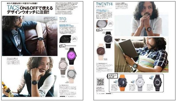 TACS 时尚简约设计腕表把日常生活元素融入设计当中,透过趣味性的创意灵感,突显TACS 腕表佩戴者的个性品味。日本TACS 完美融合简约与型格设计,曾获德国腕表设计大奖,受到众多潮流杂志与明星的青睞。