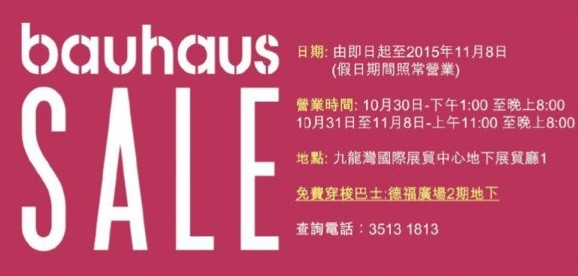 香港打折:Bauhaus SALE买一送一购物优惠(至15年10月31日)