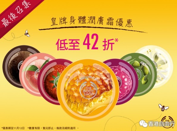 香港优惠:The Body Shop 15款精选皇牌身体润肤霜低至42折(至11月12日)