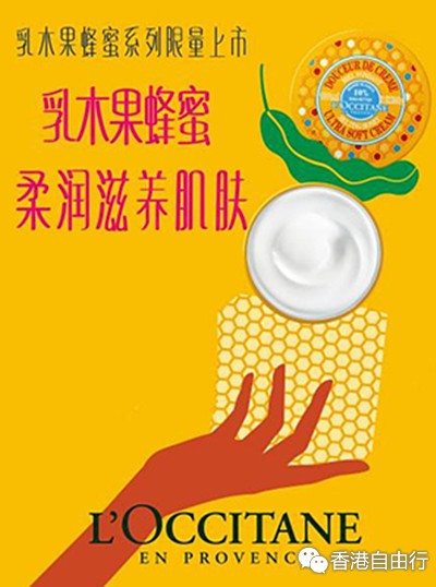 蜂蜜是历史最悠久的美容成份之一,蜂蜜具有柔肤及保湿作用,令身体每吋肌肤愉悦舒适。L'OCCITANE欧舒丹全新乳木果蜂蜜系列,将香甜幼滑的普罗旺斯蜂蜜精萃与无比滋润的乳木果结合,满载幸福感觉的美味配搭,肌肤触感柔滑如丝,散发蜂蜜的温馨甜香,确保肌肤得到全面及有效的保护。