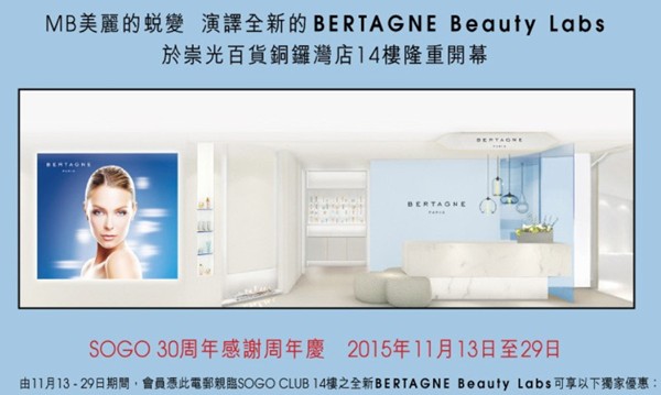 香港打折:BERTAGNE sogo崇光30周年感谢周年庆购物优惠(15年11月13-29日)