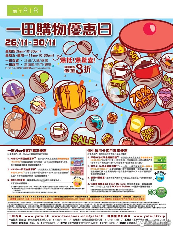 香港打折:一田百货购物优惠日即将来袭啦!爆低爆惊喜,精选货品低至3折(11月26日至30日)