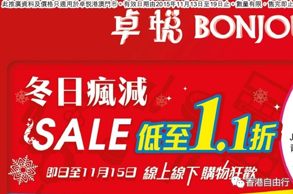 香港打折:卓悦Bonjour最新门市优惠(15年11月13至19日)