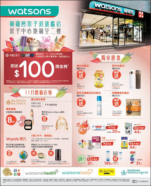 香港打折:屈臣氏最新店内购物优惠(至15年11月16日)