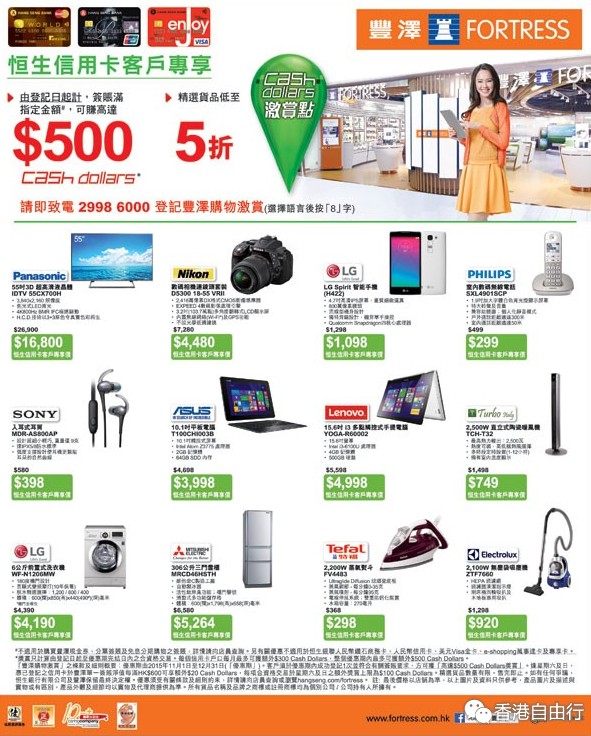 香港打折:丰泽FORTRESS最新购物优惠(15年11月13日起)