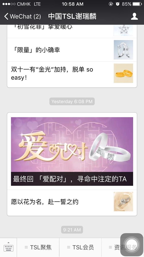 第一步:点击“阅读原文”,进入TSL|谢瑞麟「爱配对」活动页面。