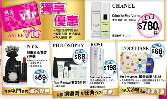 香港打折:雅施最新店内化妆品购物优惠(15年11月20日至12月3日)