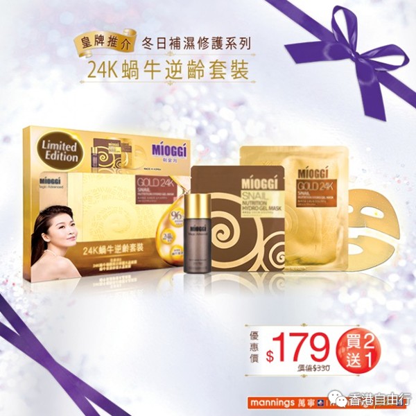 为了令你以最佳状态迎接圣诞,MIOGGI隆重推出限量「24K蜗牛逆龄套装」,一次过体验大热的皇牌产品,让肌肤準备就绪,时刻绽放韩国女生般的水润透滑光芒!