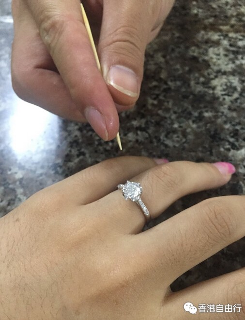 第一站,买闪闪。去之前做了一番攻略,(关于钻石相关的小知识,宝贝们还是一定要知道啊)说实话我也没对比几家,由于我有自己预期的标准,所以很快就选中了,然后帮我们验了证书,也找到了网上的编号。剩下的就是戒托,我老公给我选的喔,我本来是打算要一个最普通的就好,但老公看中了一个花朵形状的说是公主都要用这个哟,就愉快的决定了。约定下午6点左右去拿宝贝。