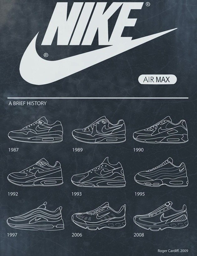 AIR MAX演进的历史,其中最受欢迎的就是AIR MAX 1和90了