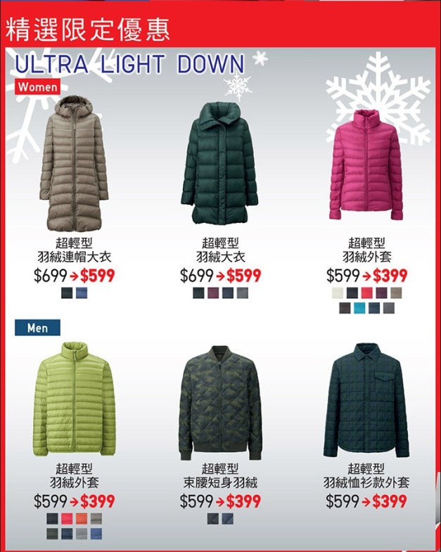 香港打折:UNIQLO精选商品迎接窝心圣诞购物优惠(至15年12月13日)