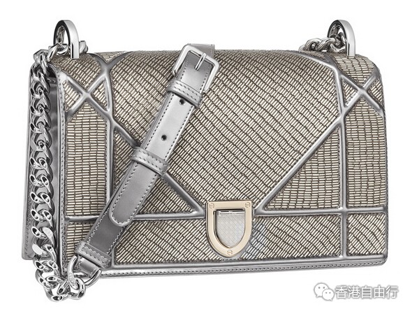 小号银色刺绣珠管建筑感藤格纹镜面小牛皮Diorama包袋