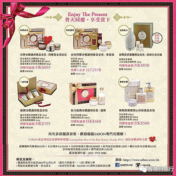 香港打折:SABON 2015年圣诞套装欢欣献礼优惠(至15年12月31日)