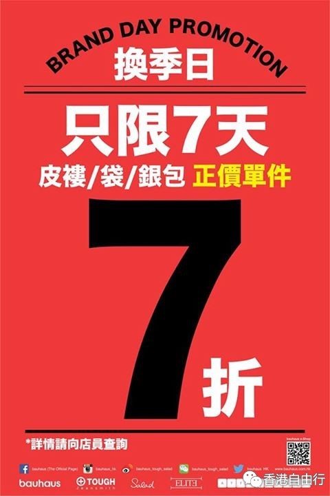 香港打折:Bauhaus正价皮䄛、袋、银包单件7折优惠(至2015年12月7日);