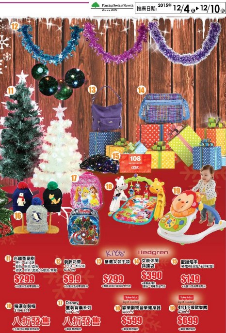 香港打折:AEON永旺欢欣满载迎圣诞购物优惠(15年12月4至10日)