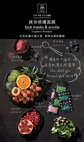 一连串的节日社交活动难免会令面容容易出现疲态,所以一定要定时为肌肤「叉叉电」,以最佳状态迎接全新一年! APIVITA 是首个把面膜塑造成肌肤营养食物的护肤品牌,最近更全新推出速效修护面膜系列,系列共有18款面膜及眼膜,可为肌肤提供均衡养份,带来即时修护功效,瞬间焕发健康亮丽神采!